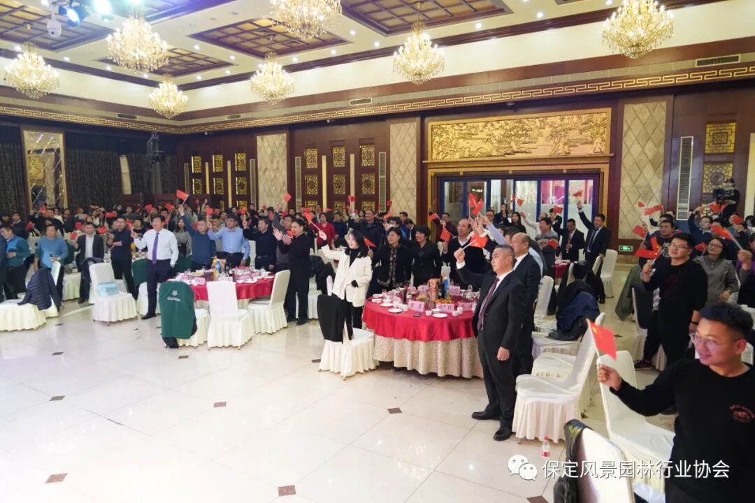 最后,大屏播放保定风景园林行业协会及会员企业助力抗击新冠疫情捐款捐物的先进事迹,全场手举五星红旗高唱《歌唱祖国》,祝福伟大的祖国繁荣昌盛。