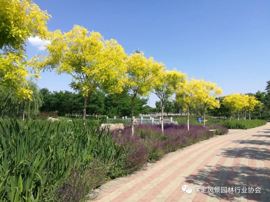 环城绿带要重新梳理沿线绿化景观,巧借沿途风景,建立与周边山、水、田园相互联系,创造连续的绿色线性空间,并注重景观序列的丰富变化,考虑车行和慢行不同的视觉体验,对道路沿线重要的区域进行生态修复、花镜种植,设计多层次、结构合理的绿色风景廊道。河北春晓园林工程有限公司在绿化范围植入一条贯穿整个区域的慢行系统,慢行系统时而穿梭林间、时而穿梭雨水花园、时而穿梭花田,可沿途领略满城独特的生态风光,打造完整的森林氧吧慢行体验。同时整体环路设有汽车停车位,便于人们停靠。两侧绿带和景观节点兼顾临时绿化和永久绿化的结合,为远期的城市道路建设和城市发展做预留设计。在环城绿带中设计一条贯穿整个设计范围的慢行体验系统,骑行道里侧间隔 500-800 米辐射范围内设置自行车停靠点供游人休息、换乘。以“绿色、生态、自然”的理念打造城区舒适环境,努力成为保定乃至京津冀的都市花园。