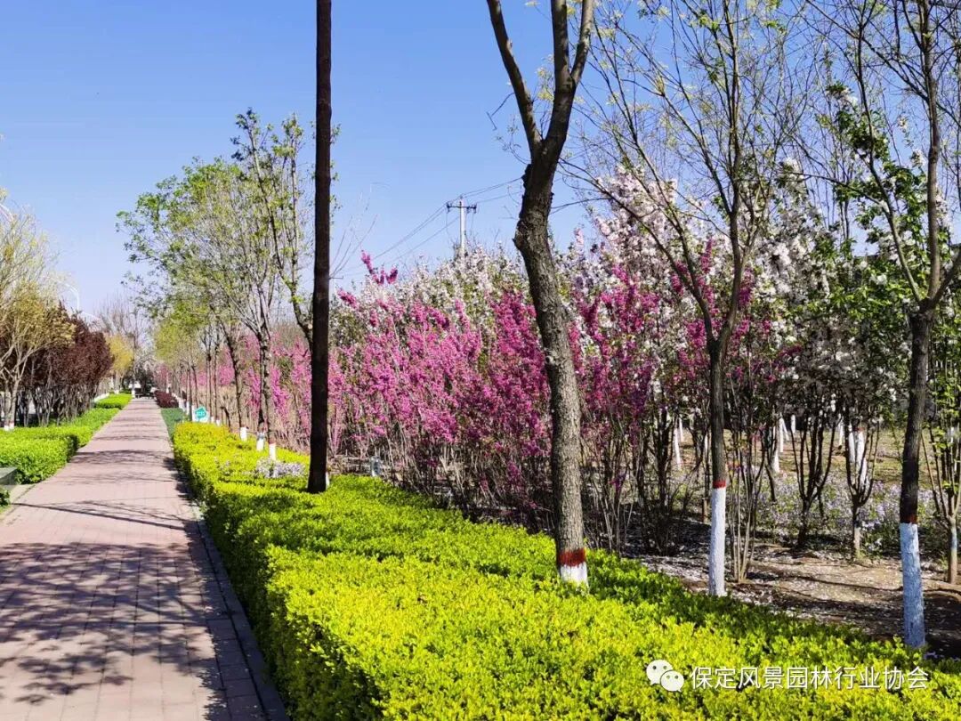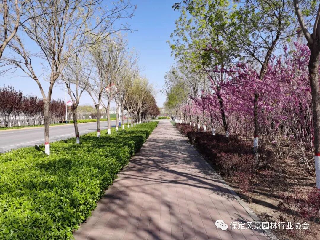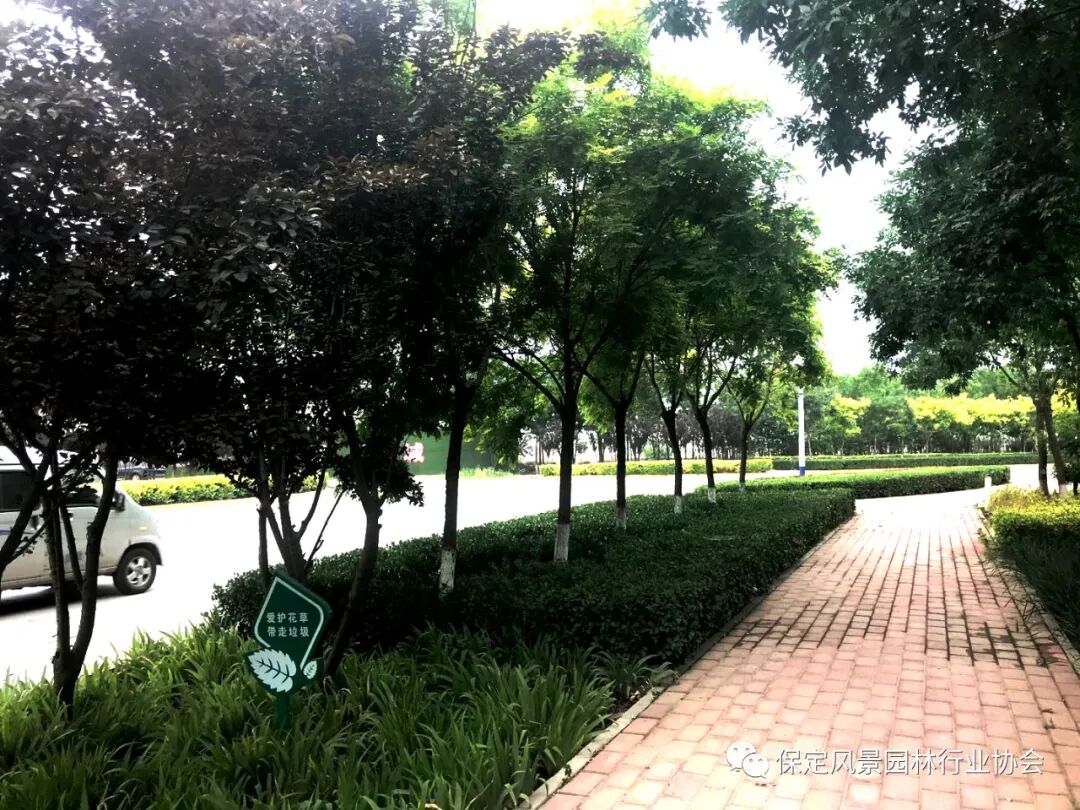 本工程为定兴县吉祥街新建段绿化一期工程,施工地点为兴园路至新 107 国道。工程内容包括:绿化工程、桥梁工程、给水工程、电力工程、电信工程、路灯工程、 燃气工程、灯光工程等施工内容。其中绿化工程包含:乔木种植、灌木种植、绿篱 种植、花卉种植、草皮铺装、园路铺装、喷灌设施等施工内容。工程灌溉设计采用快速取水阀人工进行浇灌,材料选用优质 PE 管材进行施工,满足乔、灌、草不同种类的需水要求。通过对道路的绿地面积增加、改善绿地原有的植物配置方式、增加透水铺装等手段来达到增加城市的雨水蓄水量,雨涝季节将70%的降雨就地消纳和利用,干旱季节能够通过自身储水量对城市热岛现象有缓解。本项目在植物配置上不仅做到高低错落有致,景观上保证美观,从实际的作用出发真正做到了不漏一粒土,乔木、灌木、地被、草皮相互交错对水土进行全方位的吸收。项目新建了景墙、中国风景墙和景门,增加了道路的观赏功能,提高了人文景观情怀。经过对本项目道路绿化景观、铺装及设施建设提升,改善了街道的景观效果,提高了本项目街道绿地的抗涝抗旱的能力。